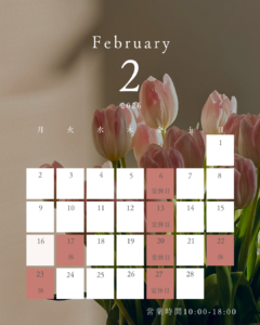 カレンダーの通り、2月も皆さまとお会いできる日を大切にお待ちしております。