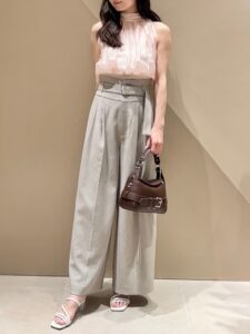 例えば、キリッとしたセンタープレスのスラックスや、ハンサムなVネックのブラウス。シルエットを直線的に整えるだけで、ピンクは途端に「知的な色」へと昇華します。素材も、上質なとろみ感や、あえてドライなリネンなど、質感で奥行きを出すのが大人のたしなみです。